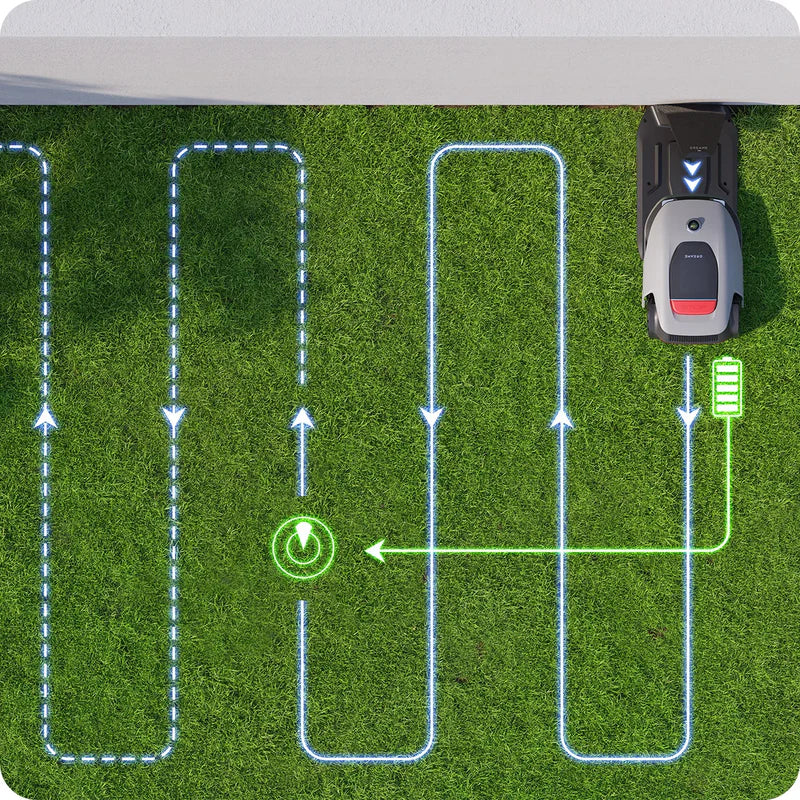 The A1 Pro charges itself, so you don't have to worry about battery life. When the power drops below 15%, this smart mower automatically returns to the charging station. Once fully charged, it resumes mowing, making it ideal for large gardens.