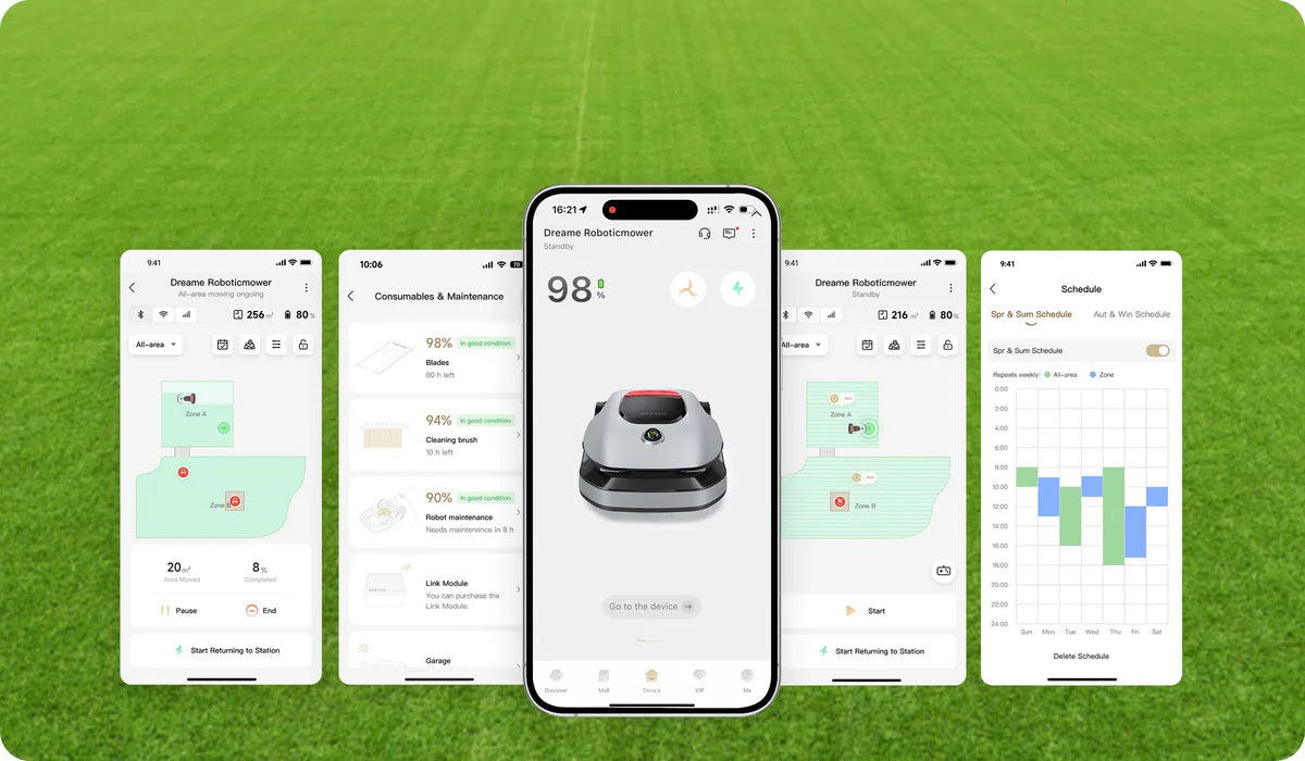 Grâce à la technologie de données de nuage de points 3D et à des algorithmes intelligents avancés, l'A1 Pro détecte les obstacles dans les limites définies et les contourne intelligemment pour garantir que la pelouse est tondue en toute sécurité et de manière contrôlée.