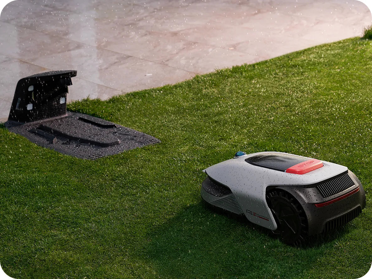 Lorsque l'A1 Pro détecte de la pluie, il retourne automatiquement à la station de charge et reprend la tâche de tonte interrompue une fois la pluie arrêtée.