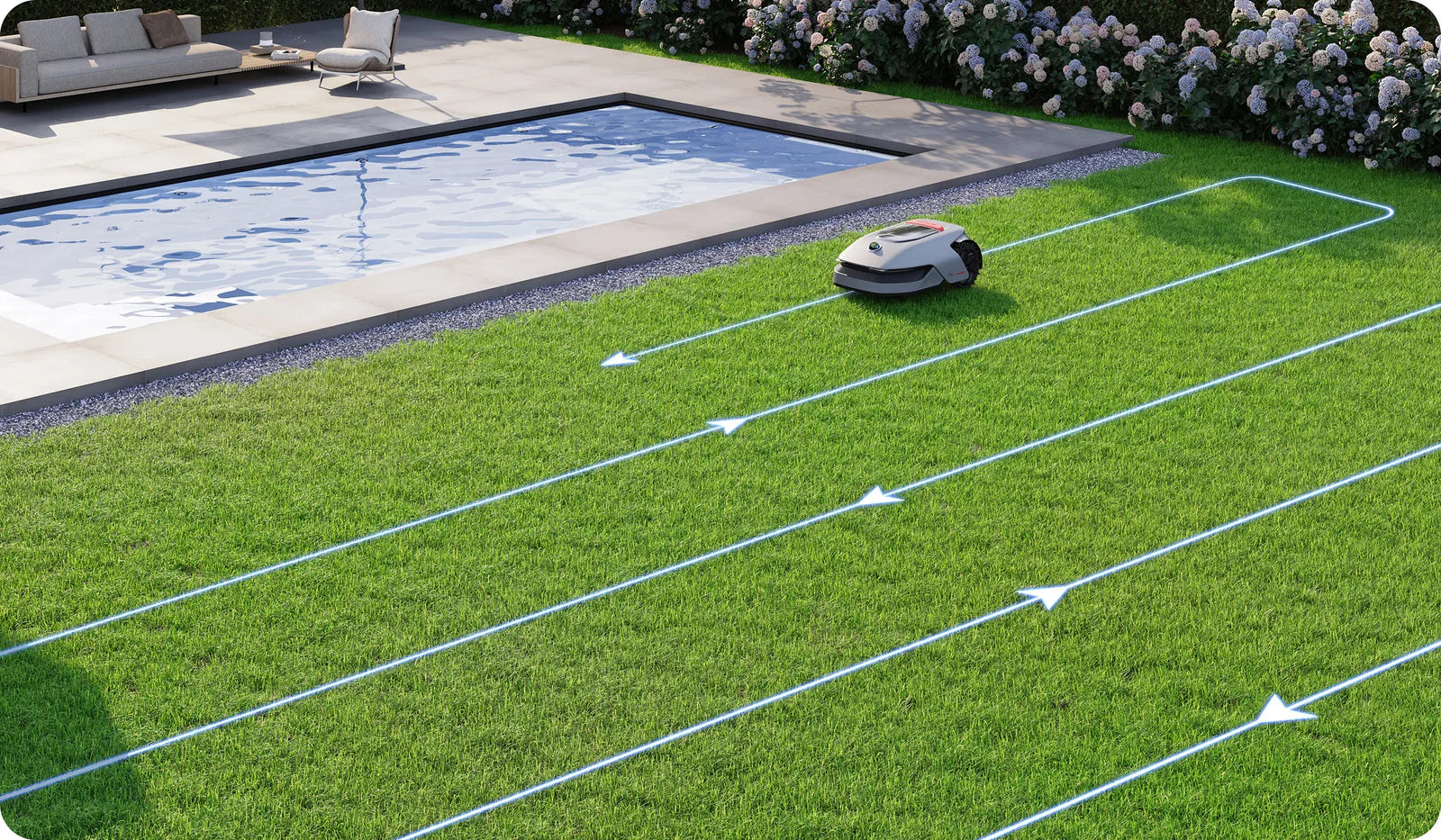 L'A1 Pro utilise un système innovant de planification de trajectoire en U pour tondre toutes les zones de votre pelouse, offrant une régularité et une qualité de coupe exceptionnelles. Les grands jardins jusqu'à 1 000 m² peuvent être entièrement tondus en seulement 24 heures.