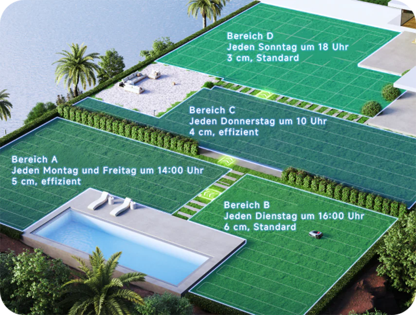 Grâce à la numérisation raster LiDAR et à des algorithmes visuels avancés, l'A2 détecte et distingue avec précision les zones herbeuses des autres. Il parcourt rapidement votre jardin, le scanne et en délimite les contours, vous permettant ainsi de profiter pleinement de votre temps libre.