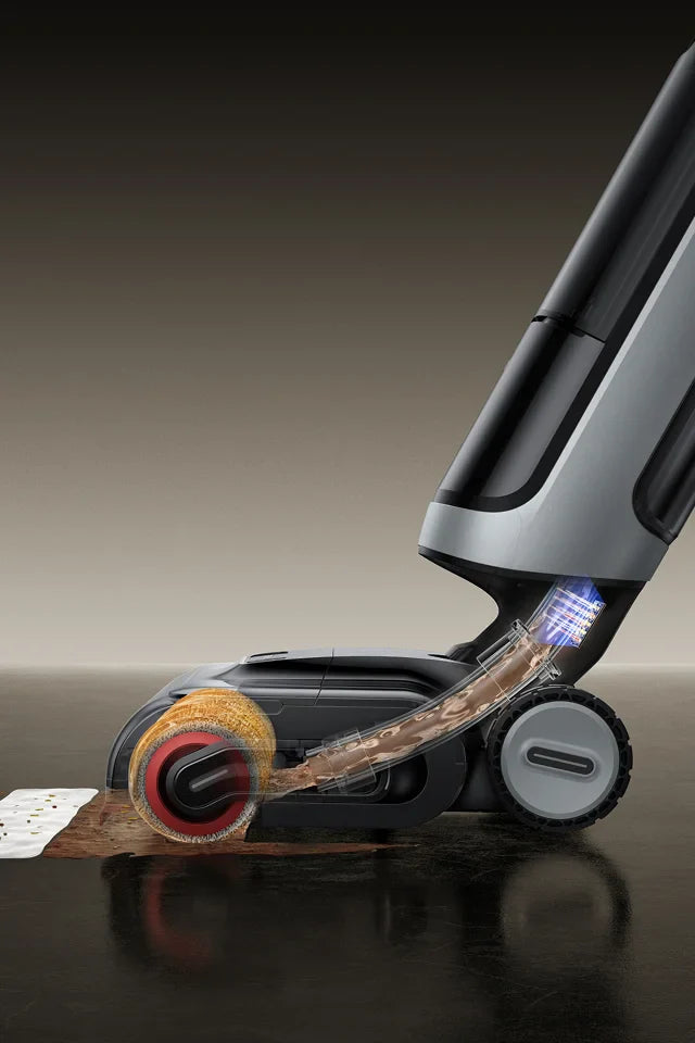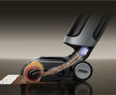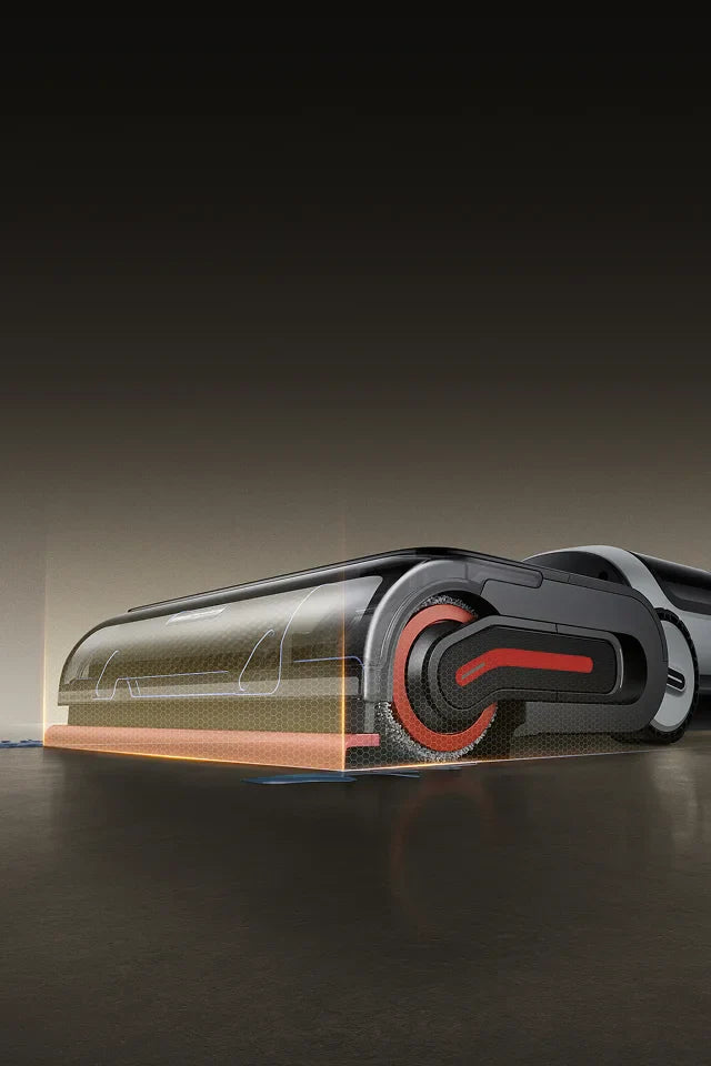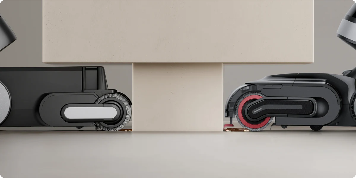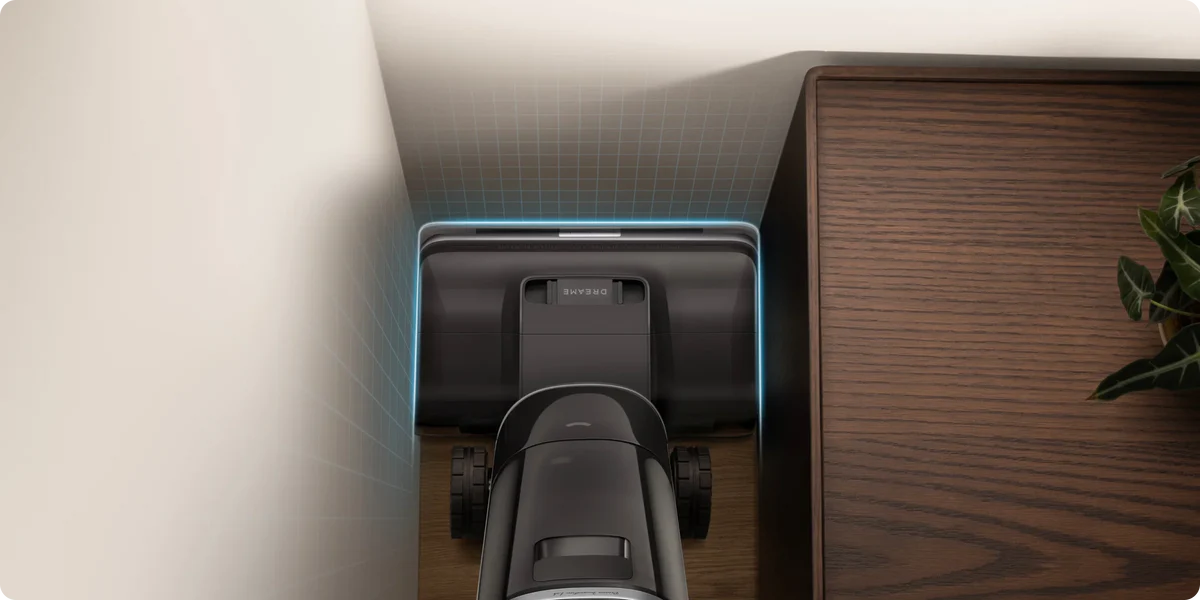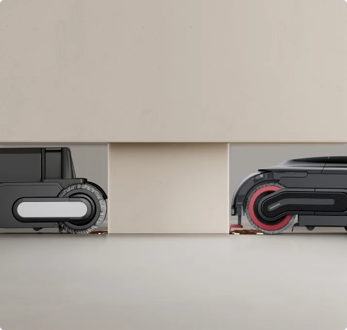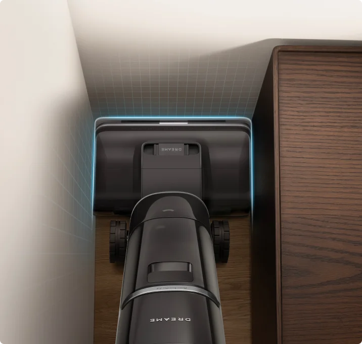 Le bras robotique IA doté de la technologie GapFree™ peut détecter les débris et s'étendre pour éliminer la saleté des plinthes, réduisant ainsi à zéro l'espace de 2 cm typique des anciens modèles.