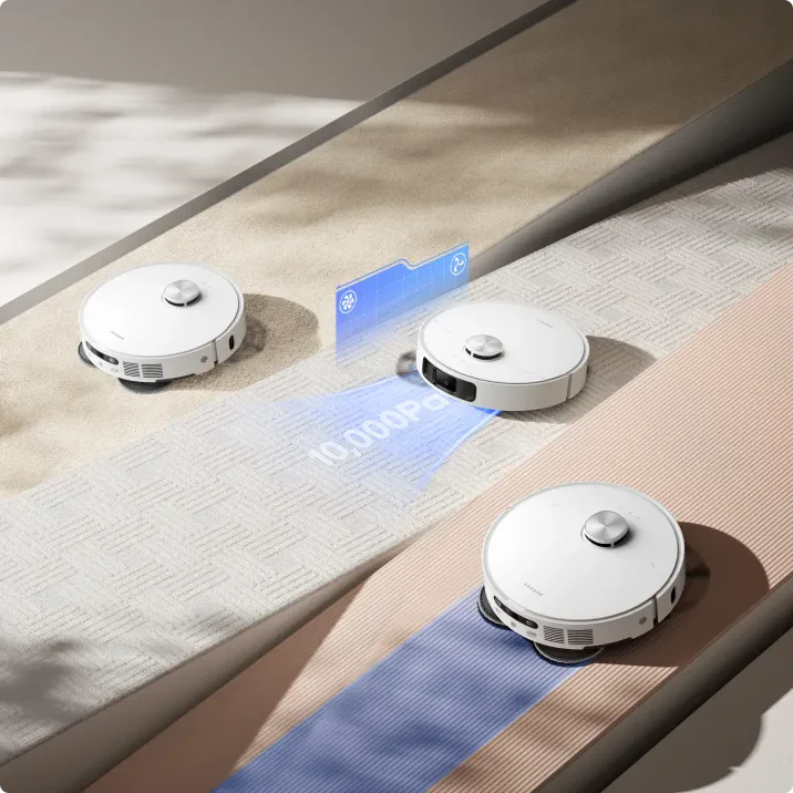 Der L10s Ultra Gen 2 bietet mehrere Teppichreinigungsmodi: Anheben der Wischmopps, intensive Teppichreinigung mit Saugkraftverstärkung, Staubsaugen und Wischen, Teppichvermeidung und priorisierte Teppichreinigung. Wählen Sie den optimalen Modus für jeden Ihrer Teppiche aus.