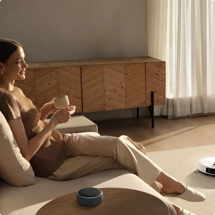 Mit der freihändigen Steuerung durch die Integration des Sprachsteuerungsassistenten* können Sie alle Aspekte der Reinigung mühelos und bequem steuern.