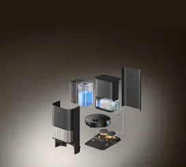 Après le nettoyage, la station d'accueil utilise un capteur de couleur pour déterminer le degré de saleté de l'eau sale. Si l'eau est trop trouble, les serpillères sont lavées à nouveau avant le deuxième cycle de nettoyage, garantissant ainsi un nettoyage constant de vos sols avec des serpillères propres.
