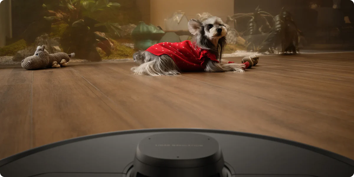 Le L40s Pro Ultra se déplace en toute sécurité dans votre maison et est même adapté aux animaux. Il détecte et évite les obstacles (gamelles, litières), les personnes et les animaux. Les zones évitées sont ensuite nettoyées.