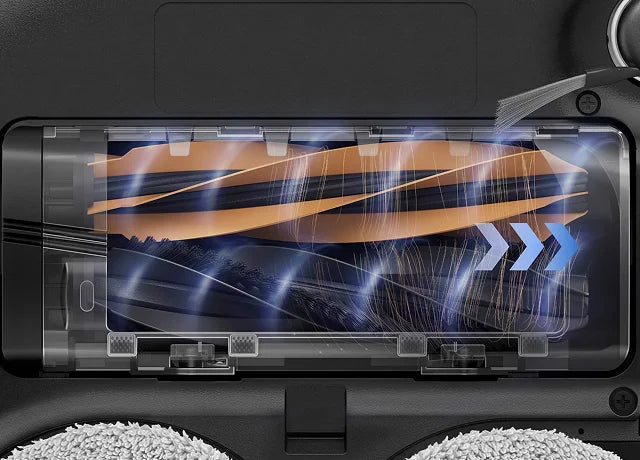 Grâce à la technologie TripleUp, le L40s Pro Ultra peut soulever et abaisser sa brosse latérale, sa brosse principale et ses tampons d'essuie-glace séparément pour éliminer différents types de saleté.