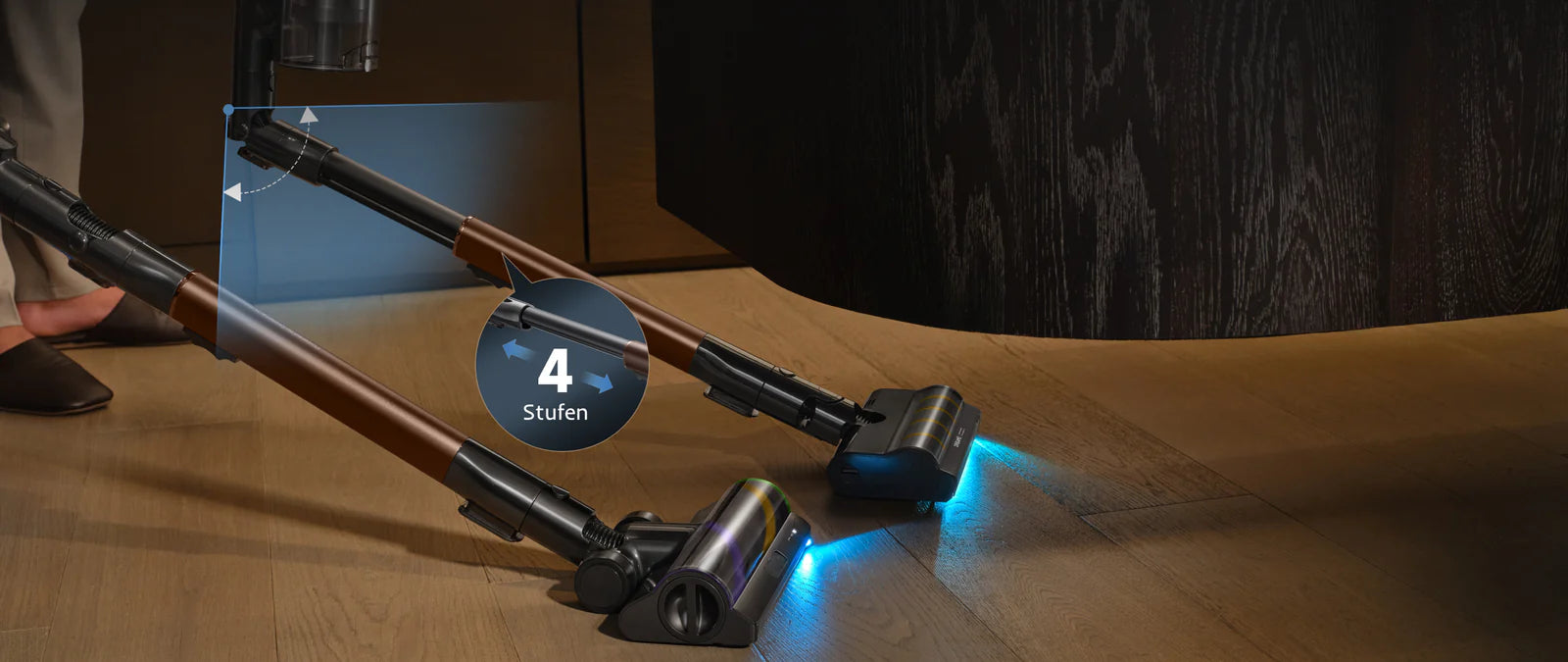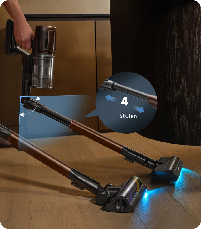 *270m²: Basierend auf Tests im Dreame Labor, die im Eco-Modus mit der Multi-Oberflächenbürste durchgeführt wurden. Die tatsächliche Leistung variiert je nach Ihrer individuellen Wohnungseinrichtung.