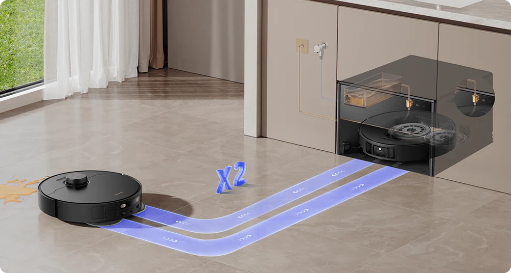 12 000 Pa : Basé sur des tests effectués au Dreame Lab. Les performances réelles peuvent varier en fonction de l'utilisation.