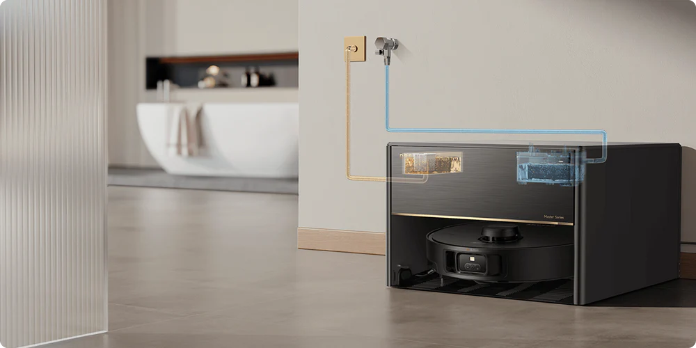 X40 Master, la solution de nettoyage révolutionnaire pour chaque maison. Le design élégant et compact s'intègre esthétiquement dans les espaces modernes et, avec sa station de base ultra-compacte, assure des performances puissantes et une manipulation confortable.