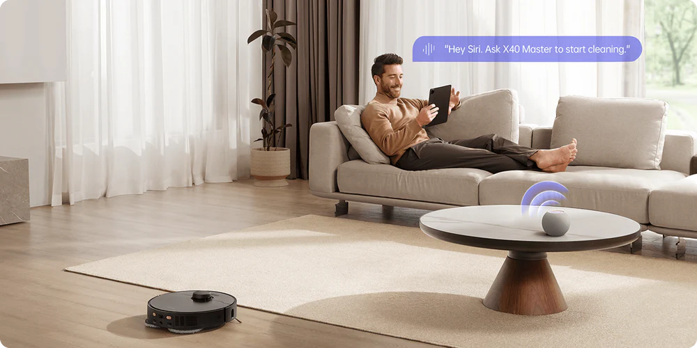 Personnalisez votre routine de nettoyage avec les assistants vocaux Alexa, Siri et Google Home*, offrant un contrôle fluide et sans effort.