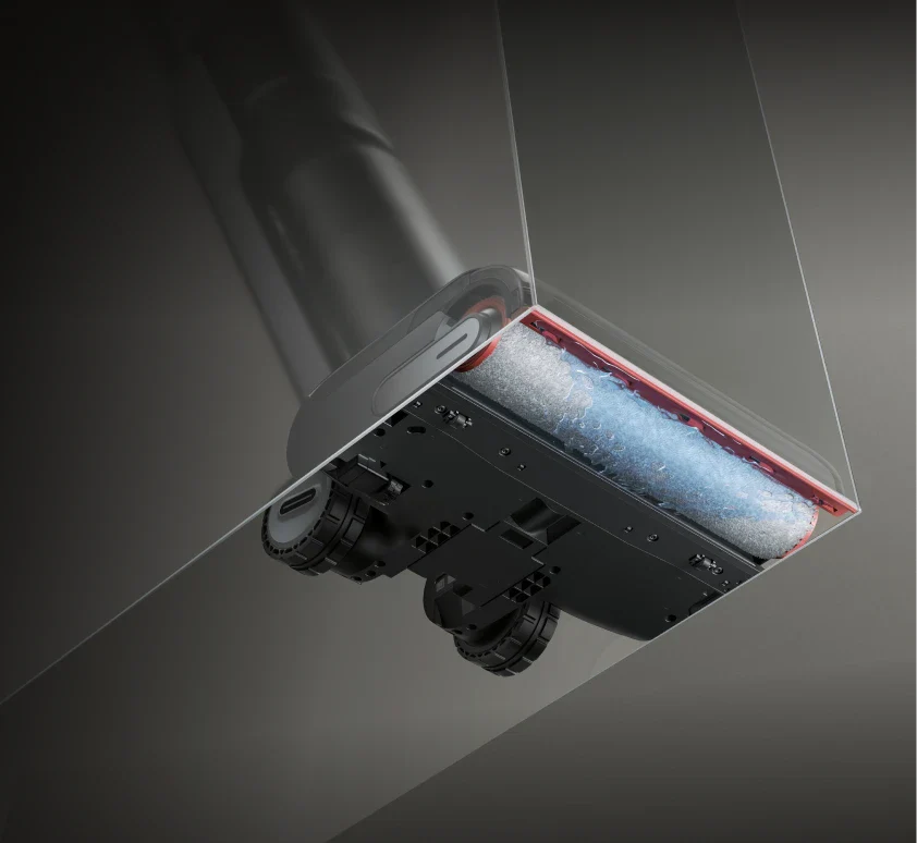Der Roboterarm ist mit internen Schabern ausgestattet, um Flüssigkeit schnell zu entfernen, sodass nur 0,01 g* Wasserrückstände zurückbleiben – für einen saubereren, rutschfreien Boden.