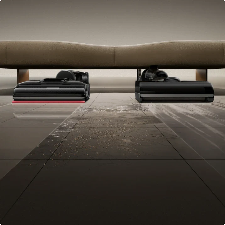 Verabschieden Sie sich von staubigen Kanten oder manuellem Nachwischen. Der H15S sorgt für eine lückenlose* Reinigung entlang der Bodenleisten, indem er gezielt versteckte Verschmutzungen entlang von Wänden und Möbeln entfernt, wohin gewöhnliche Staubsauger nicht gelangen können.