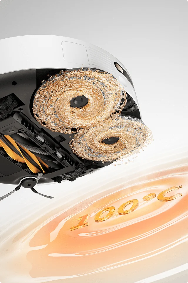 100 °C heißes Wasser reinigt die Wischer-Pads gründlich, um Fett aufzulösen, Gerüche zu reduzieren und hygienische Frische zu erhalten – und kühlt dann automatisch aus Sicherheitsgründen ab.