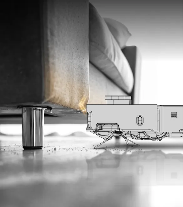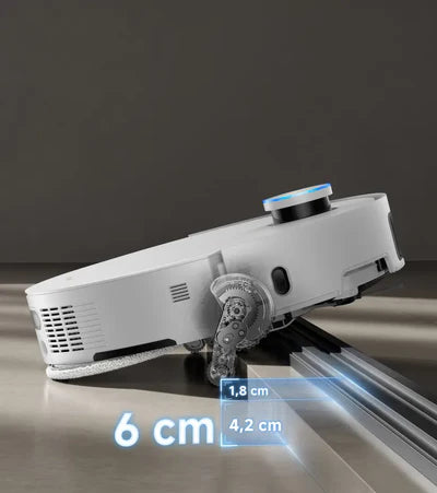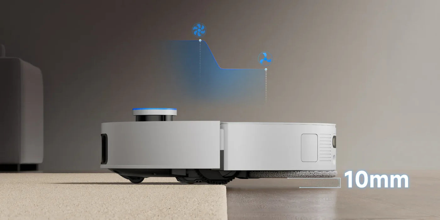 *10,5 mm: basierend auf in unserem internen Labor durchgeführten Tests. Der Höhenunterschied des Saugroboters vor und nach dem Anheben des Wischmopps beträgt 10,5 mm.