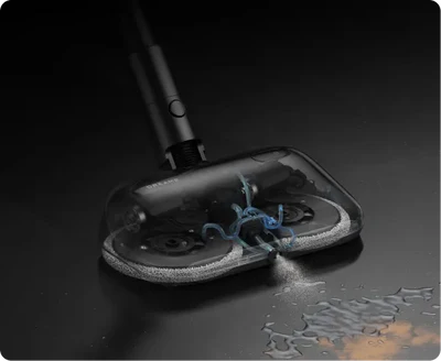 Der Mopp versprüht Wasser zur Vorbehandlung von hartnäckigem Schmutz. Durch die schnelle Drehung des Mopps werden Flecken und Verunreinigungen wie Pfotenabdrücke und Kaffeeflecken entfernt.