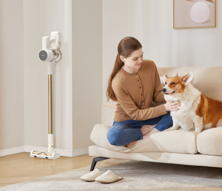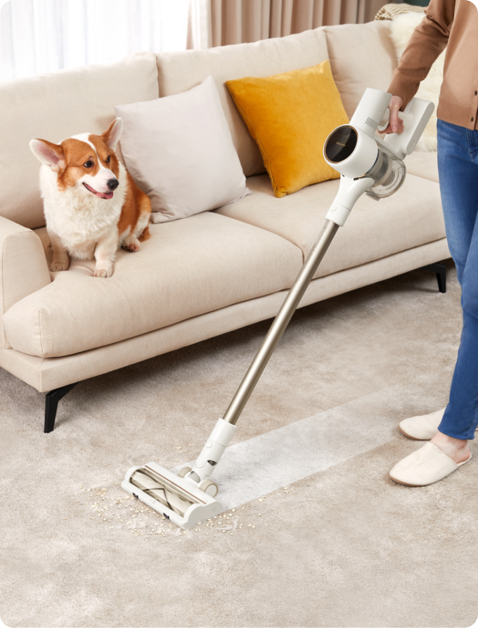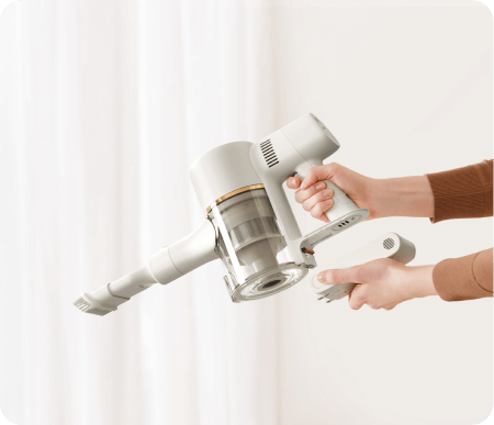 Reinigen Sie Ihr gesamtes Zuhause mit einer Saugleistung von 120 AW – dank eines Akkus mit 7 x 2.500 mAh und einem bürstenlosen Hochgeschwindigkeitsmotor mit 120.000 U/min. So erfassen Sie überall Haare, Schmutz, Staub und Rückstände.