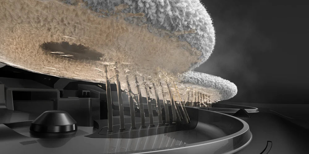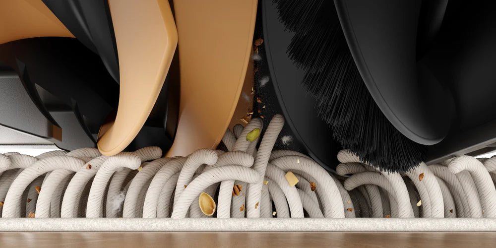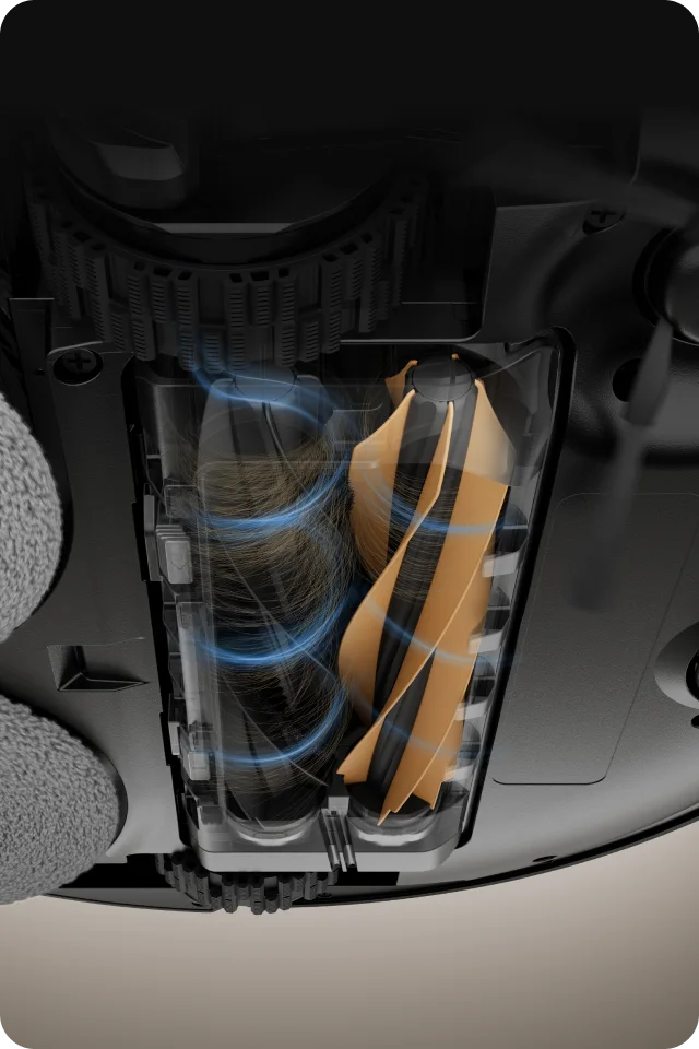 Die HyperStream™ Detangling DuoBrush sorgt dafür, dass Ihre Böden frei von Haaren sind – und zwar ganz ohne Verhedderungen. Durch das Dual-Action-Design bändigt der Roboter dabei Strähnen bis zu einer Länge von 30 cm*, um eine umfassende Reinigung zu ermöglichen. Der X50 Master gleitet mit seinen weichen Nylon-Borsten über harte Böden und reinigt Teppiche mit strapazierfähigen TPU-Gummibürsten – er passt sich also jeder Oberfläche an und entfernt Schmutz und Staub, ohne dabei übermäßig laut zu sein. Ihre Böden werden also sorgfältig und ohne Lärmbelästigung gereinigt – und Sie müssen sich auch nicht um verhedderte Haare sorgen.