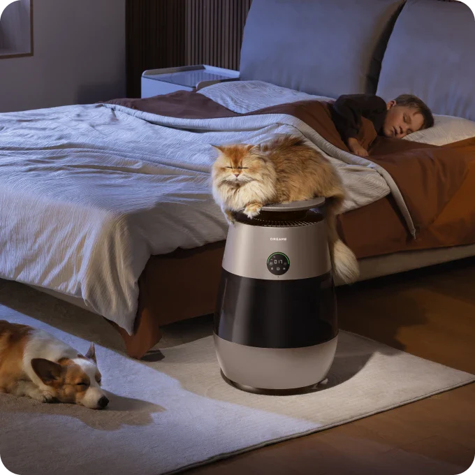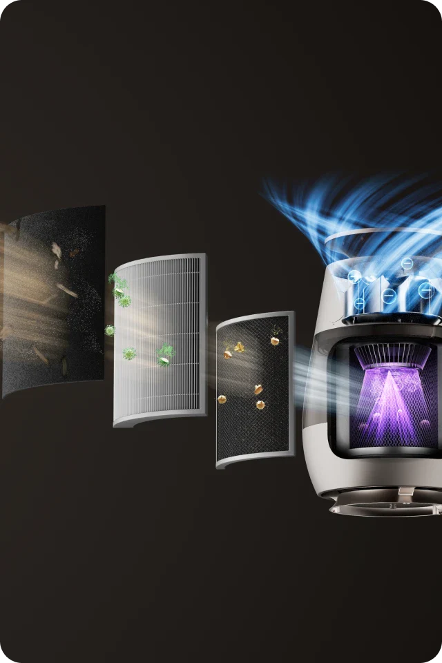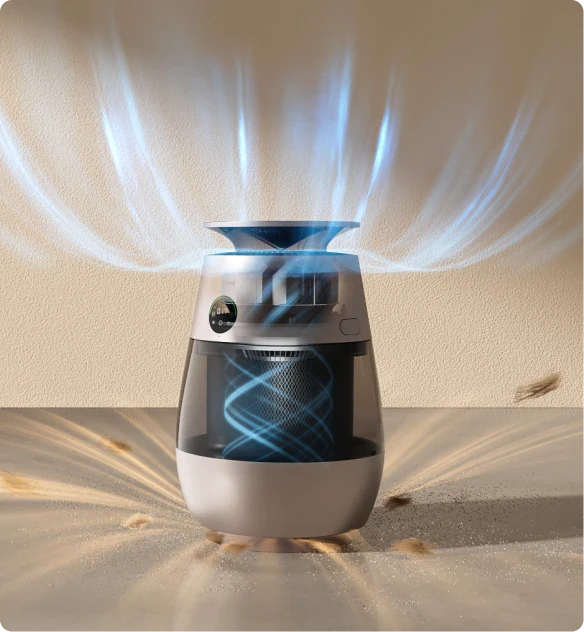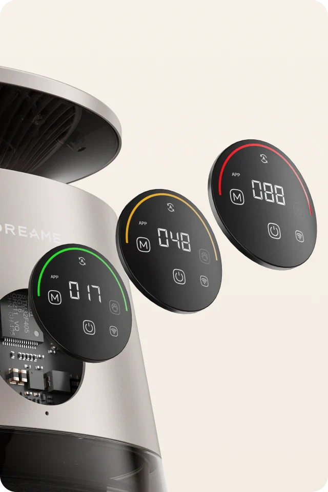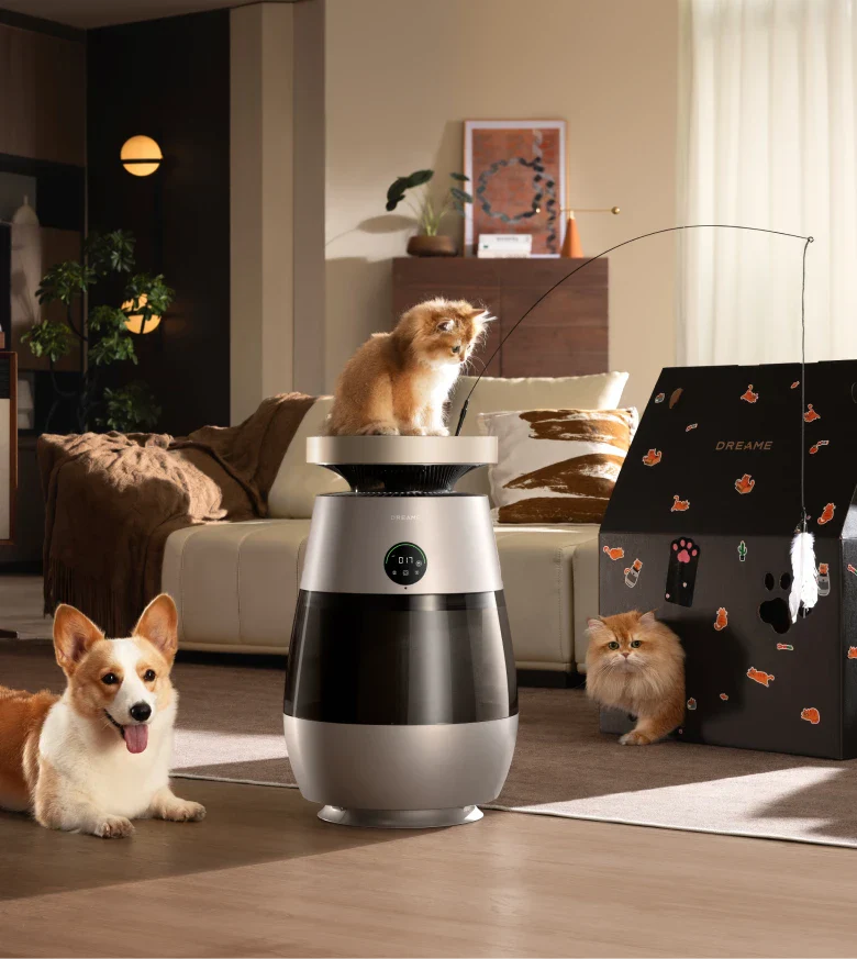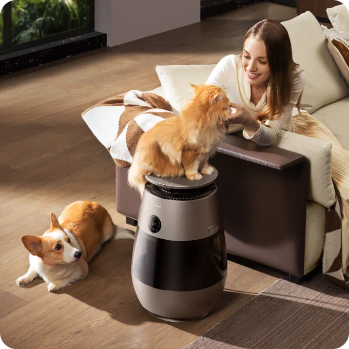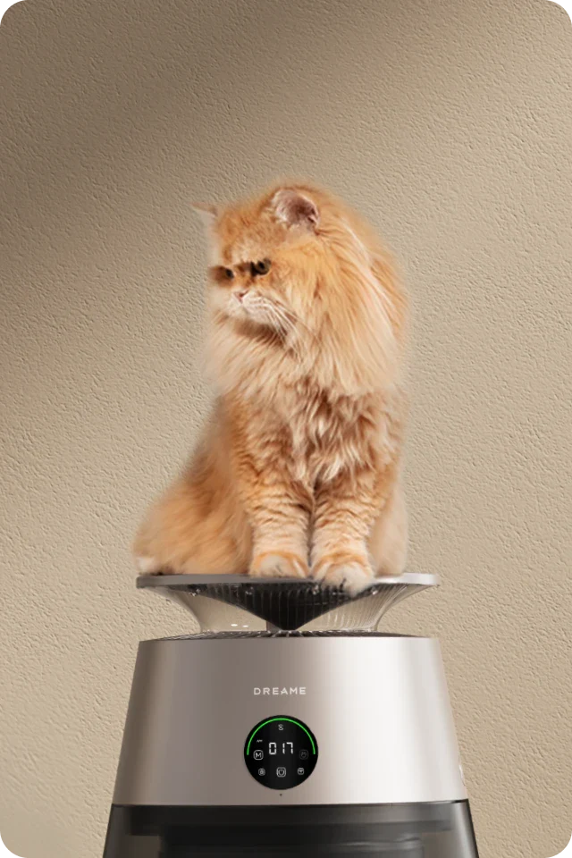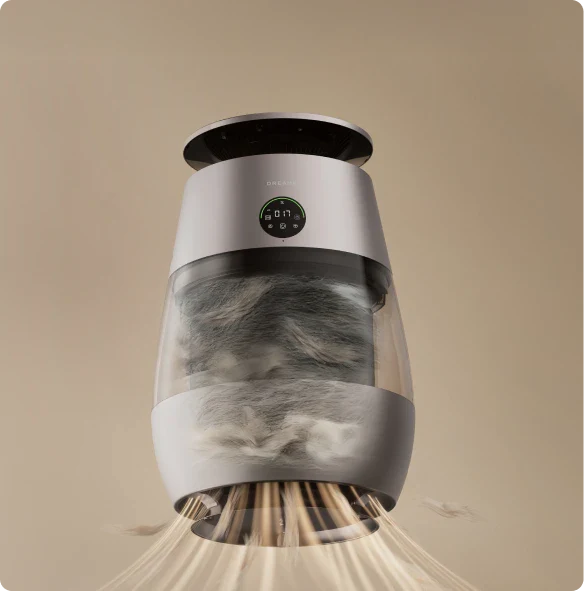 *99,9 %: Das Experiment wurde in einem unabhängigen Labor durchgeführt. Der Prototyp wurde in einer Testkammer mit einer Größe von 3 m³ platziert und auf Haustiermodus eingestellt. Während des Tests wurde beobachtet, dass nach dem Einschalten des Geräts Tierhaare mit einer Erfassungsrate von 99,9 % auf dem Filter gesammelt wurden. Daten stammen von Zhejiang Fries Testing Technology Co., Ltd. mit Bericht Nr. FZCS-250905LW-01.