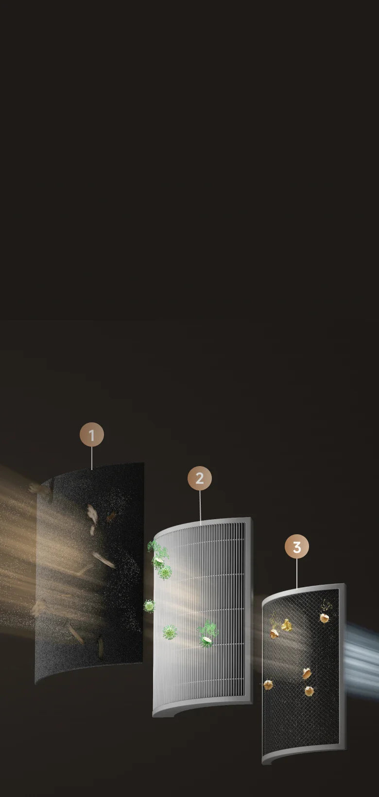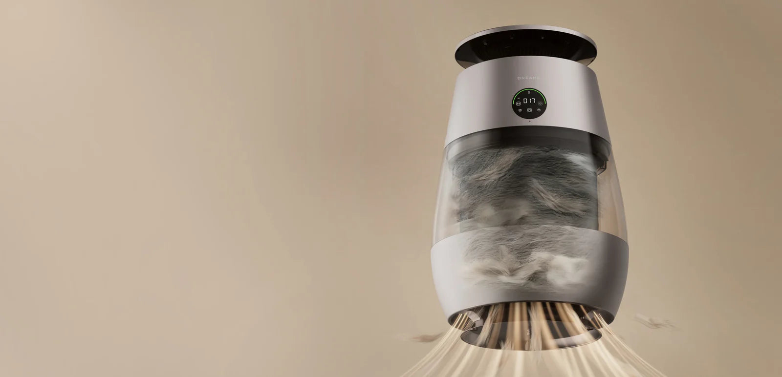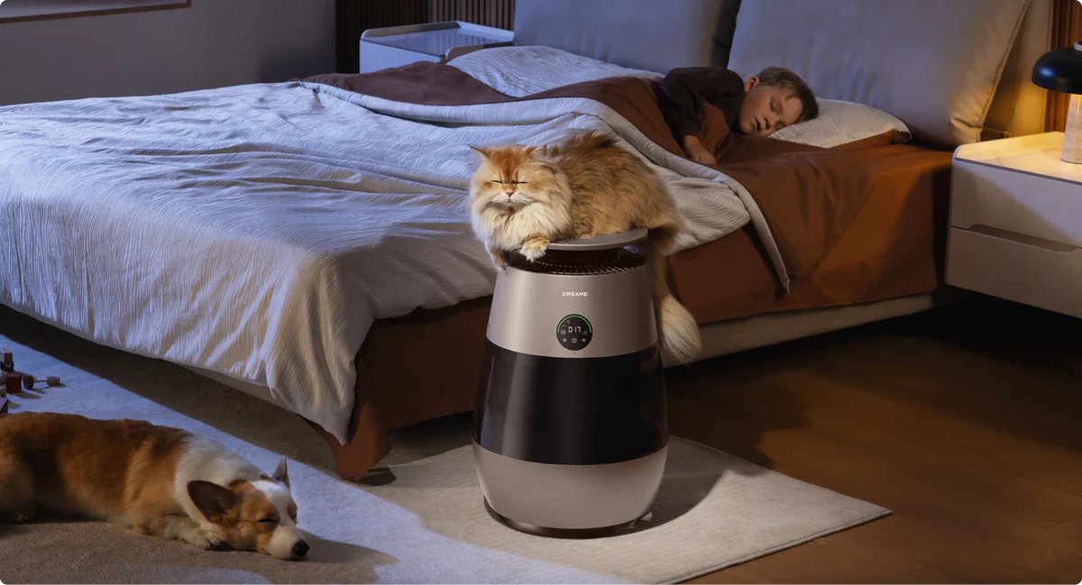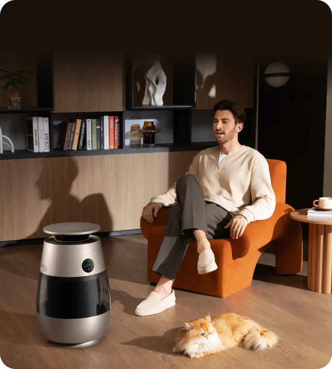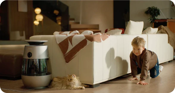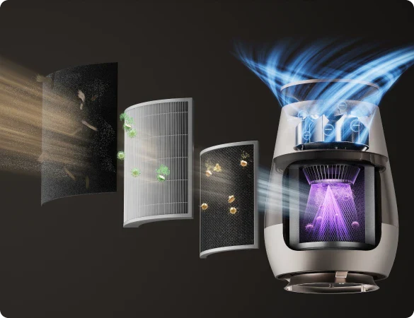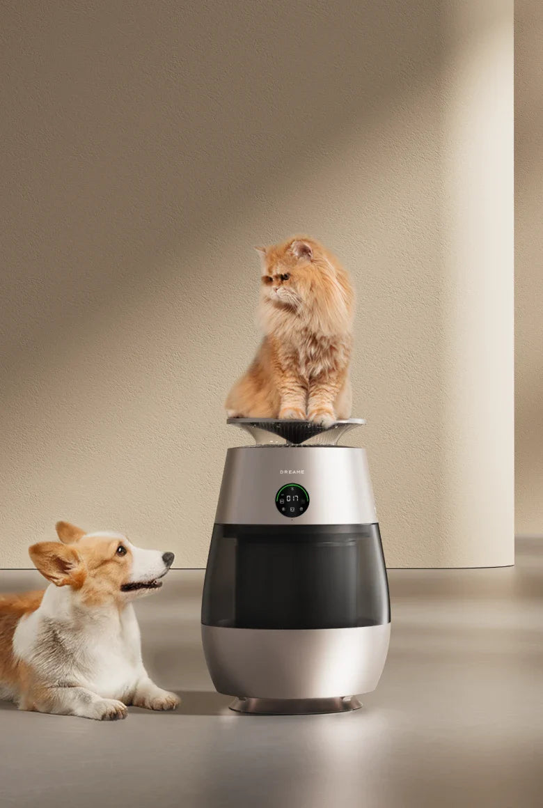 *99,9 %: Das Experiment wurde in einem unabhängigen Labor durchgeführt. Der Prototyp wurde in einer Testkammer mit einer Größe von 3 m³ platziert und auf Haustiermodus eingestellt. Während des Tests wurde beobachtet, dass nach dem Einschalten des Geräts Tierhaare mit einer Erfassungsrate von 99,9 % auf dem Filter gesammelt wurden. Daten stammen von Zhejiang Fries Testing Technology Co., Ltd. mit Bericht Nr. FZCS-250905LW-01.