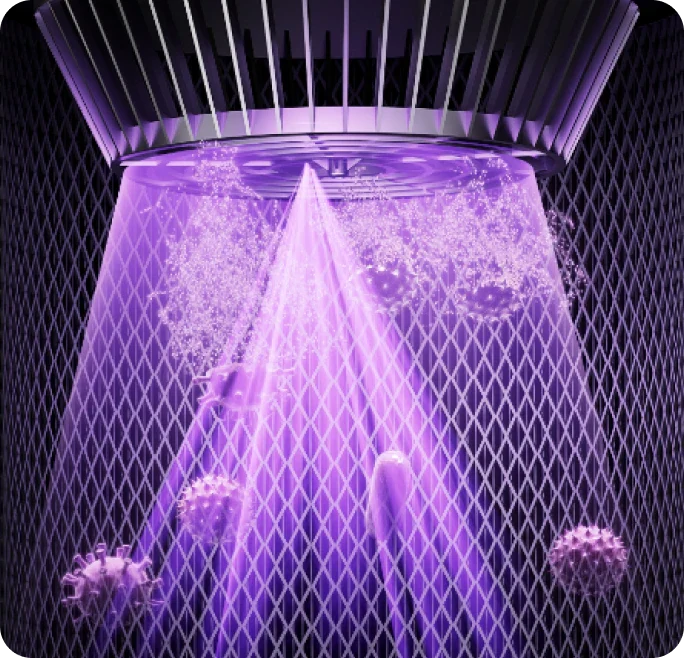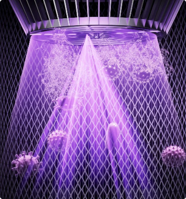 *UVC-Licht: Nutzt den Strahlungsfaktor von UV-Lampen für antibakterielle Wirkung. Durch den Einsatz einer geeigneten Wellenlänge wird die Molekülstruktur von DNA (Desoxyribonukleinsäure) oder RNA (Ribonukleinsäure) in mikrobiellen Zellen zerstört, wodurch eine bakterizide und desinfizierende Wirkung erzielt wird.