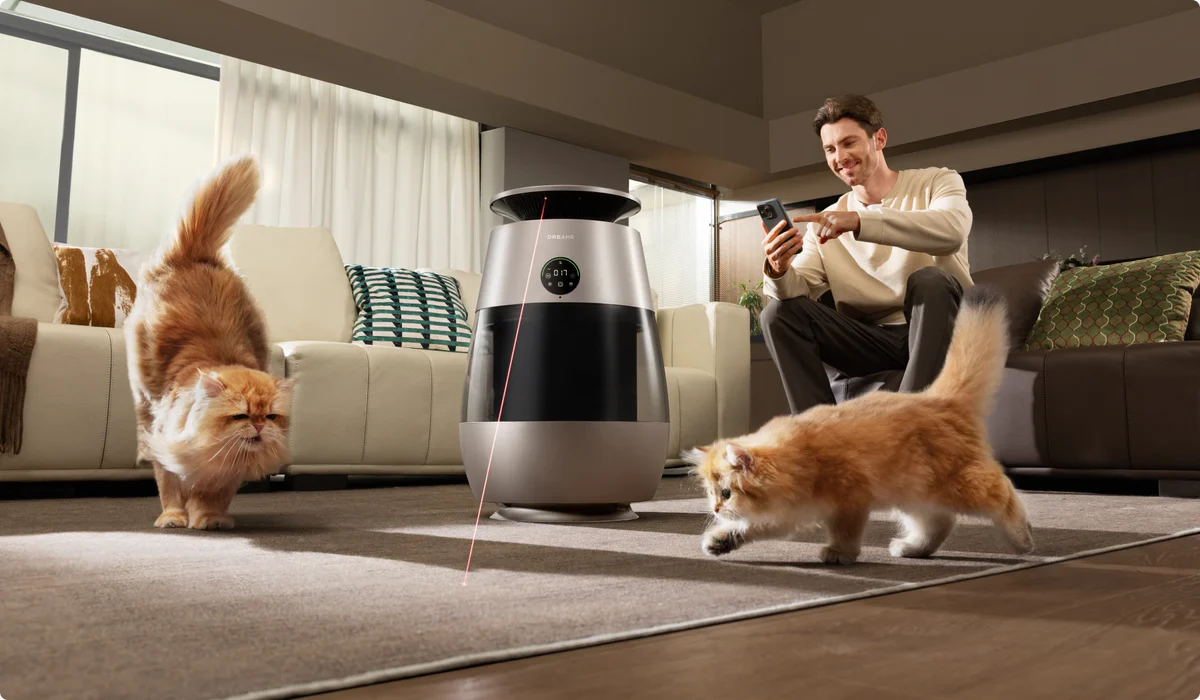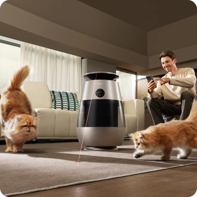 *31,9 dB (A): Durch Tests in unabhängigen Laboren verifiziert, der Schlafmodus arbeitet mit 31,9 dB (A). Daten stammen von Zhejiang Fries Testing Technology Co., Ltd. mit Bericht Nr. FS250811-19; *Interaktive Laser-Rotpunkt-Funktion: Der rote Punkt bewegt sich nach der Aktivierung zufällig und sorgt somit bei Ihrer Katze für Unterhaltung.