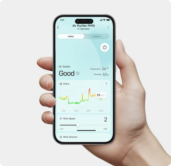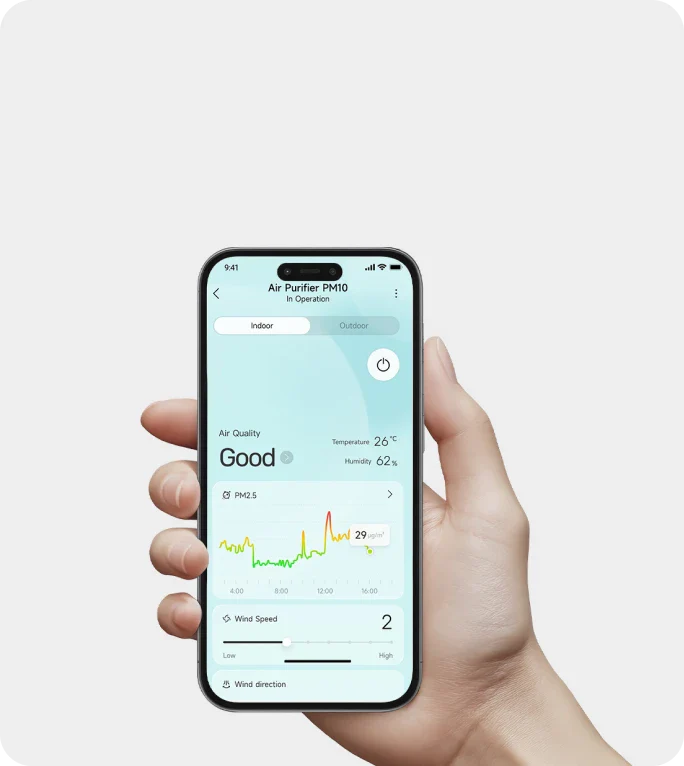 *Automatischer Reinigungsmodus: Das Gerät passt die Lüfterdrehzahl anhand der Echtzeit-Luftqualität automatisch an.
