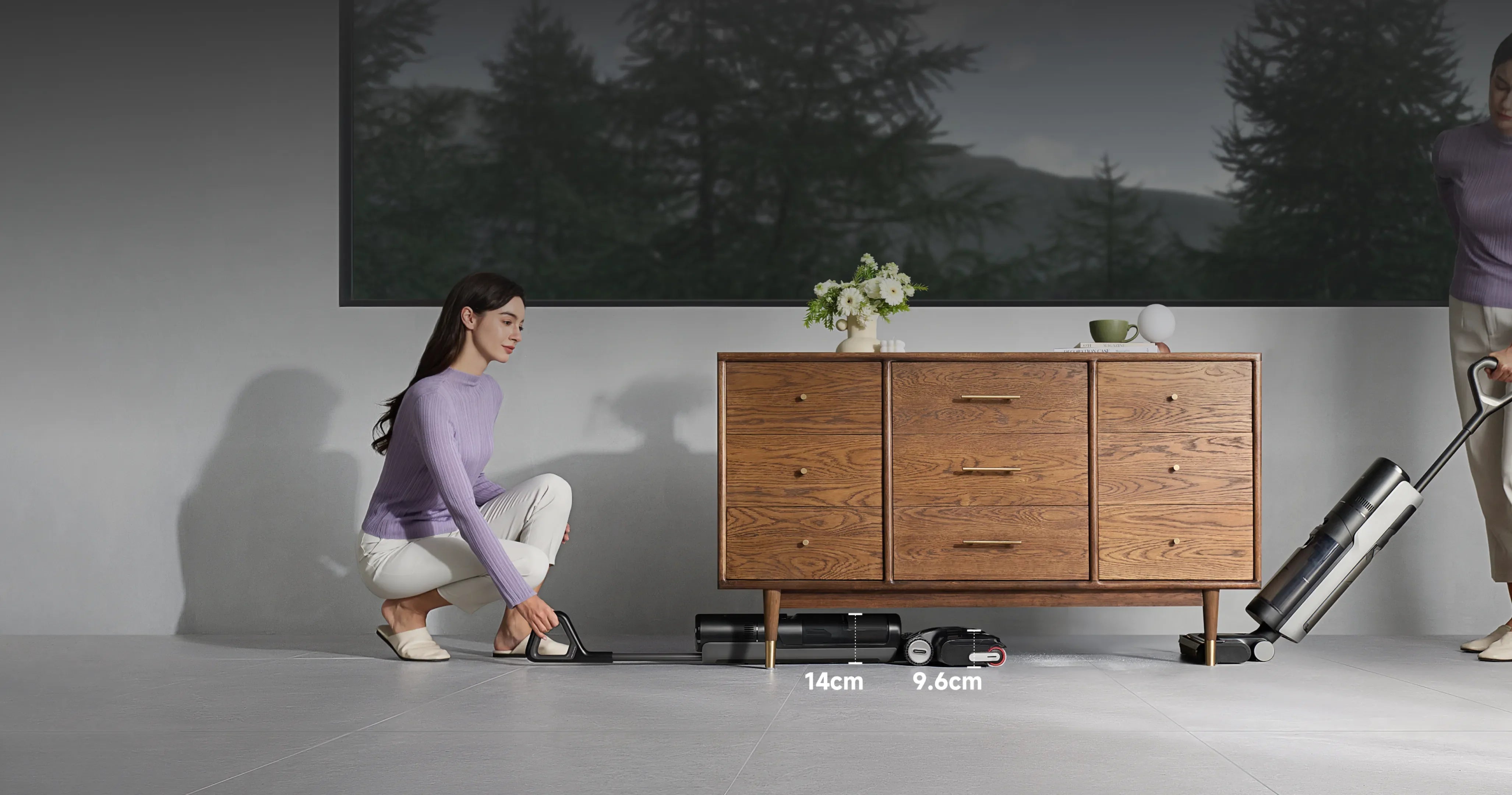 *180°, 14 cm, 9,6 cm: Der gesamte Sauger passt in niedrige Zwischenräume bis 14 cm Höhe und der Bürstenkopf sogar bis 9,6 cm Höhe. Basierend auf Daten aus unserem internen Labor.