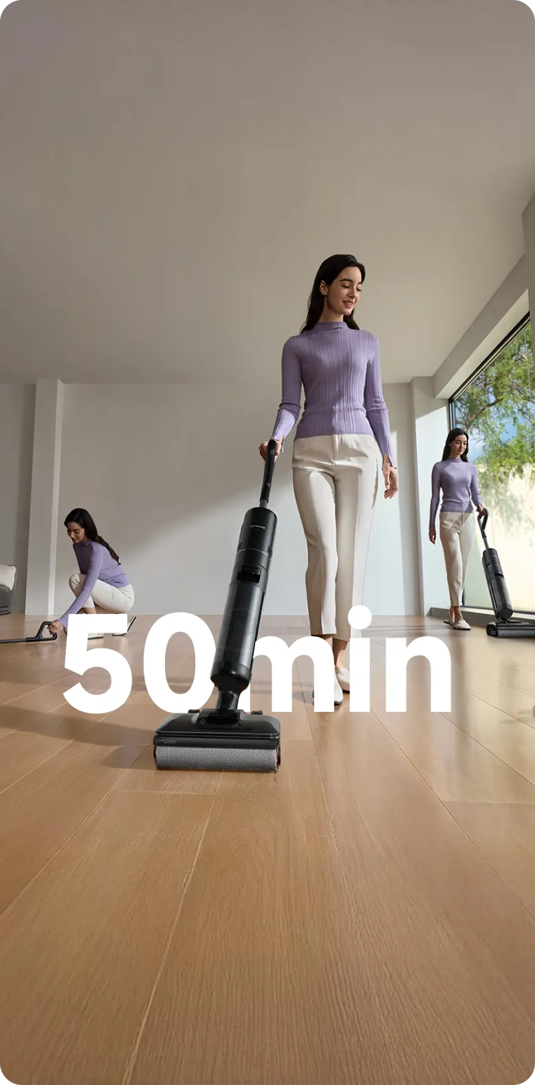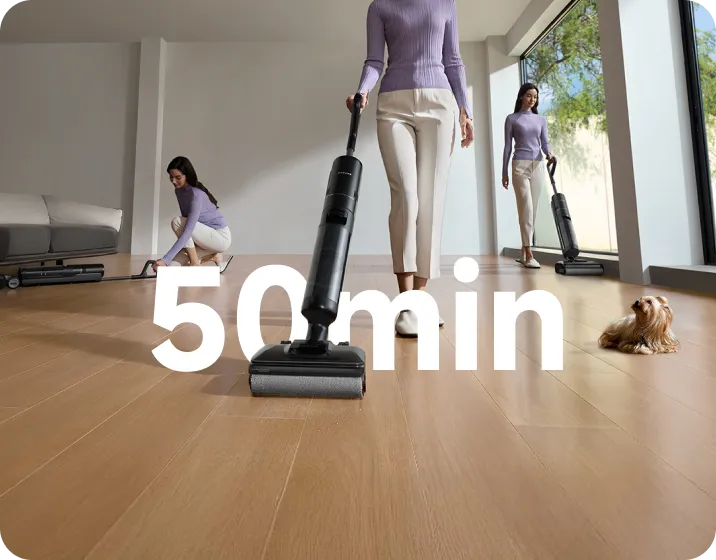 *50 Min. und 300 m²: basierend auf Daten aus unserem internen Labor im Leise-Modus. Die tatsächliche Laufzeit kann abweichen.