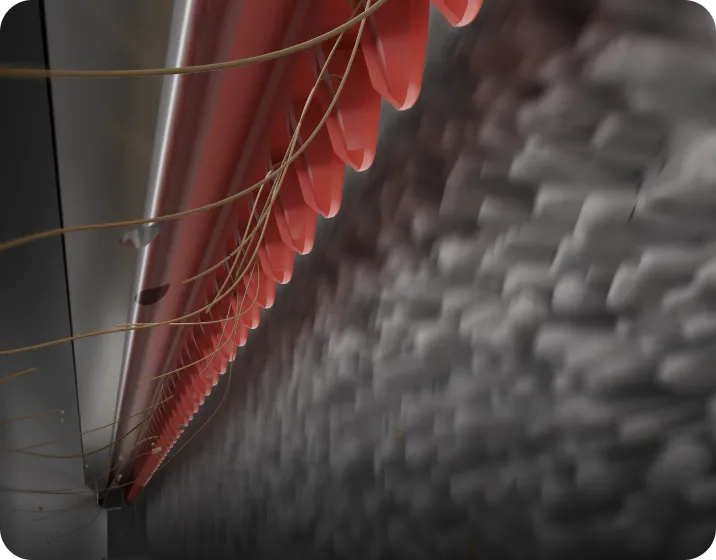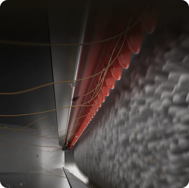 Der elastische 100 % verhedderungsfreie* Schaber verfügt über scharfe Klingen, die sogar Tierhaare und lange Haare mühelos durchtrennen. So werden aufgewickelte Haare in der Bürste verhindert und Ihnen bleibt das manuelle Entwirren erspart.