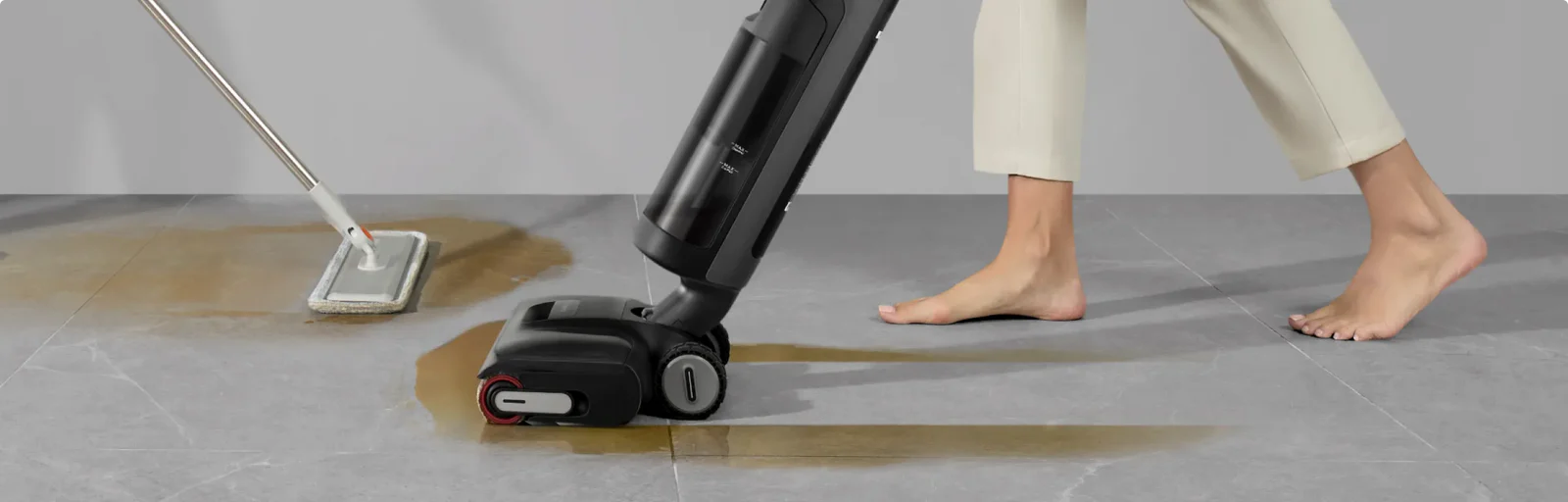 Beim klassischen Wischen besteht die Gefahr, dass sich der Boden verzieht. Zudem kann sich Schimmel bilden. Der H12 Pro FlexLite entfernt überschüssige Feuchtigkeit, sodass nach dem Wischen weniger als 0,01 g* Restfeuchtigkeit vorhanden ist.
