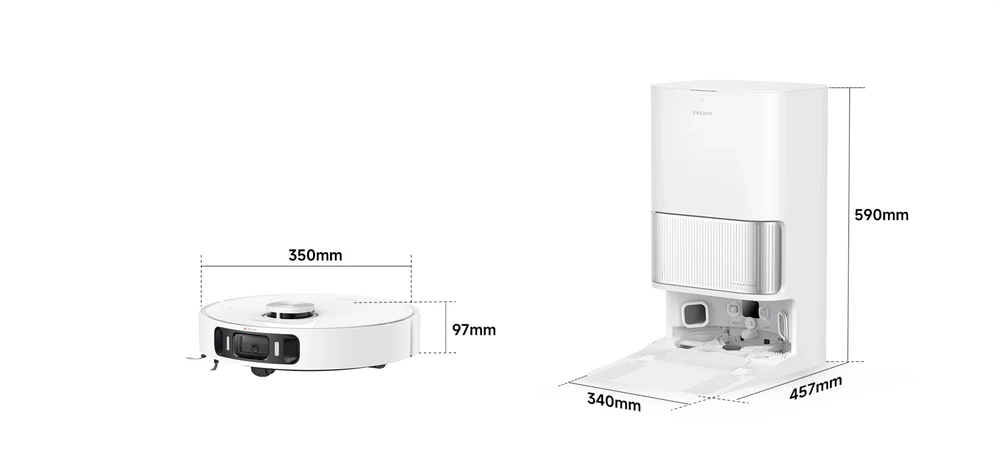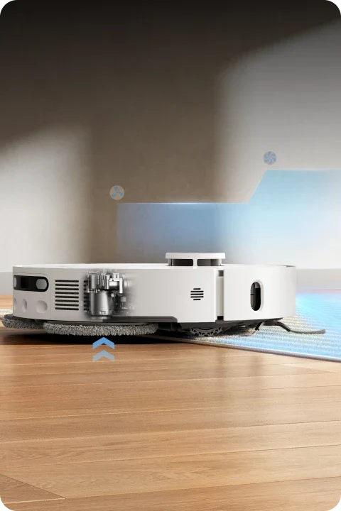 *Moppanhebung um 10,5 mm: Beim Anheben des Wischmopps verändert sich die Höhe des Saugroboters um 10,5 mm. Für Teppiche mit einem Flor von mehr als 3 mm empfehlen wir Ihnen, den Saugroboter über die Dreamehome-App so einzustellen, dass er Mittel- und Hochflor-Teppiche auslässt. So bleiben Ihre Teppiche vor Nässe geschützt.