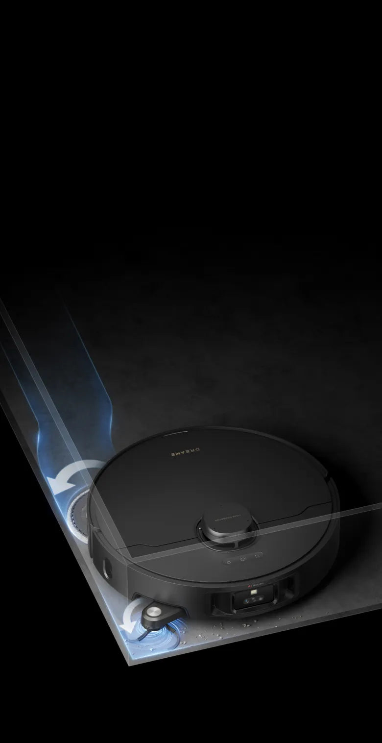 Mit TripleUp Tech kann der L40s Pro Ultra seine Seitenbürste, Hauptbürste und Wischer-Pads separat anheben und absenken, um verschiedene Verschmutzungsarten zu beseitigen.