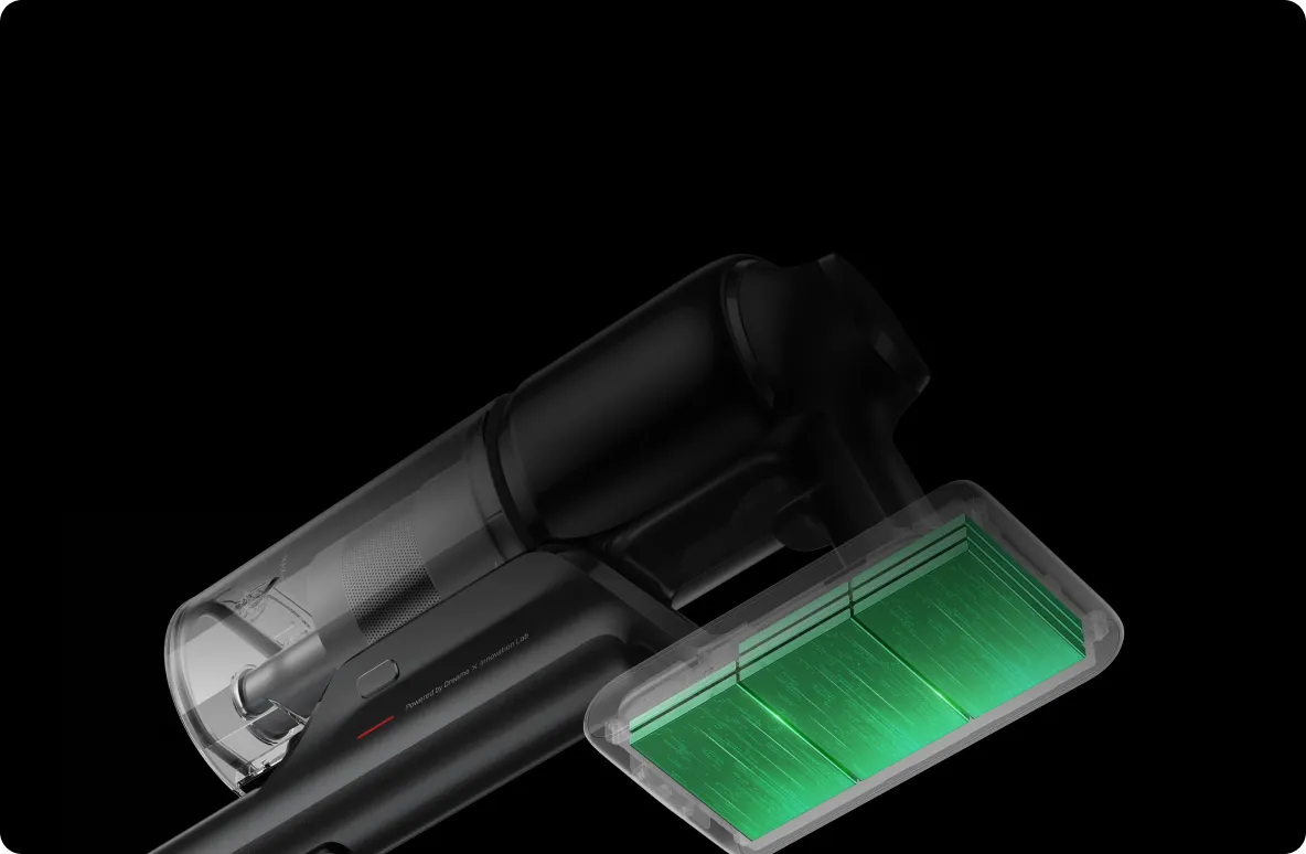 *200 m²: Basierend auf Tests im Dreame-Labor, durchgeführt im Eco-Modus mit der Hauptbürste. Die tatsächliche Leistung kann abhängig vom Layout Ihres Zuhauses abweichen.